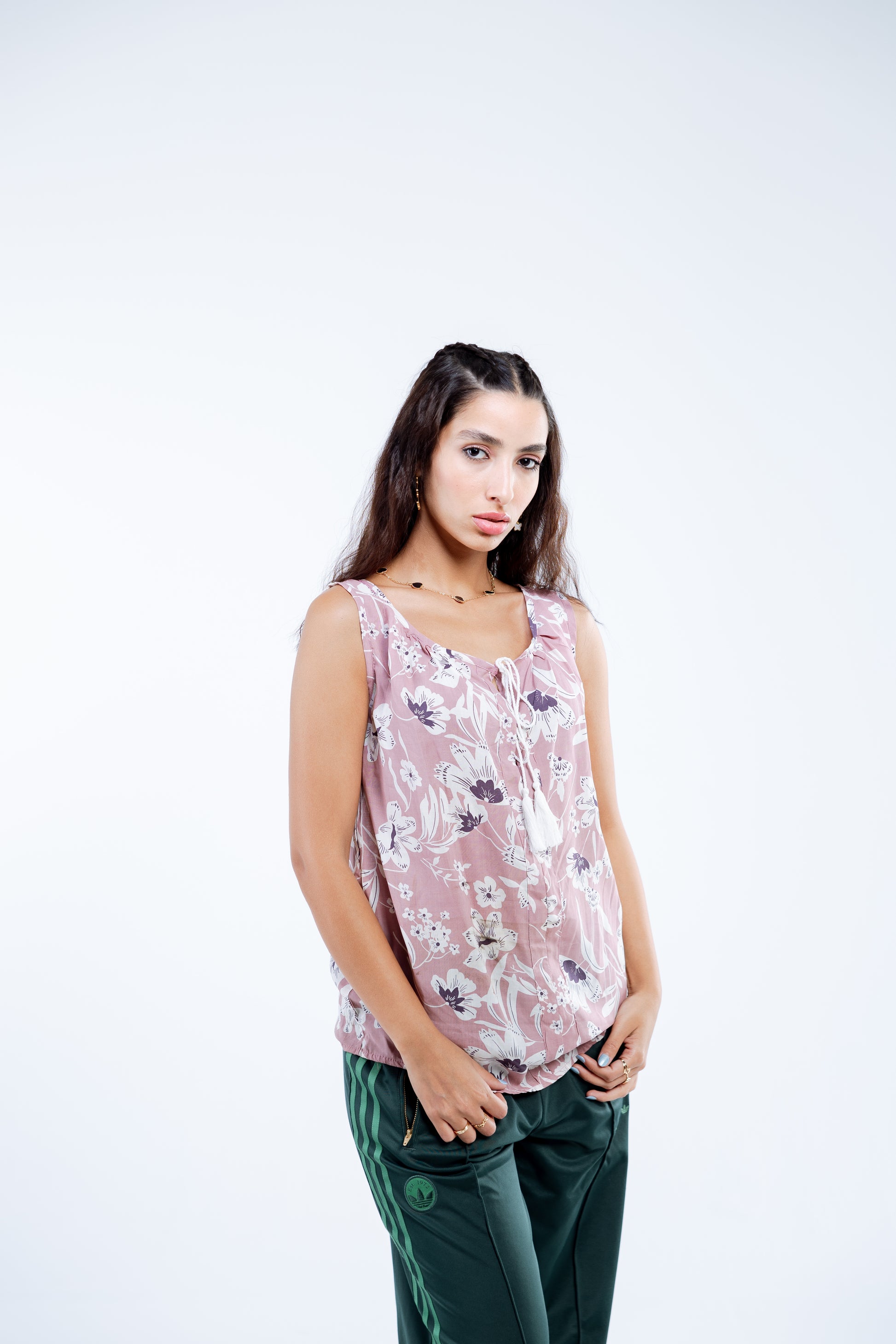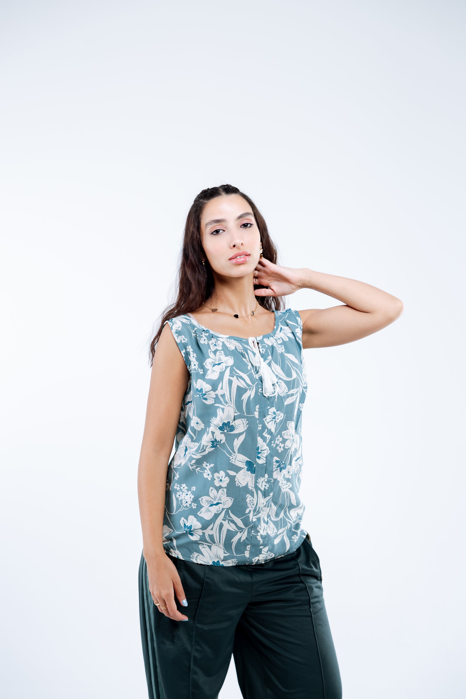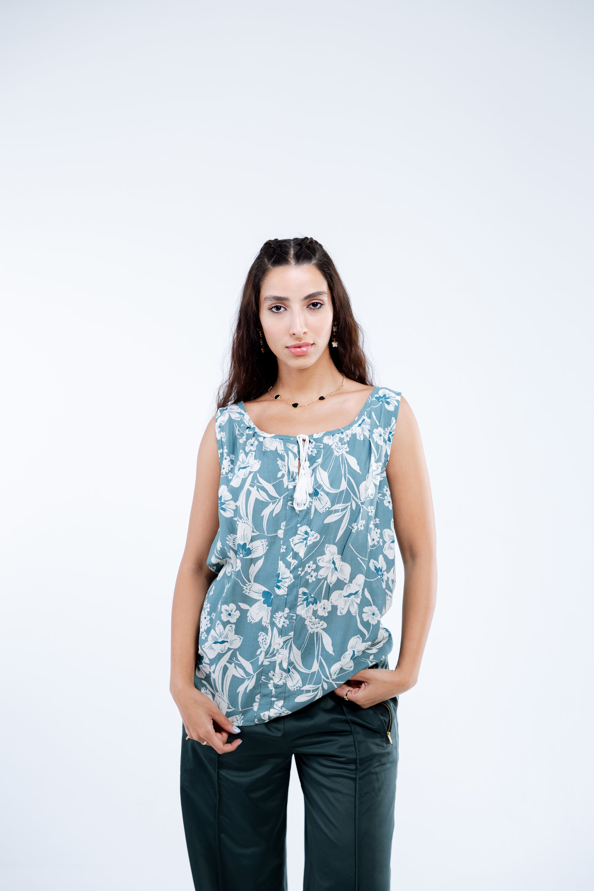 بلوزة ناعمة مصنوعة من مزيج القطن مع طبعة صيفية رقيقة.