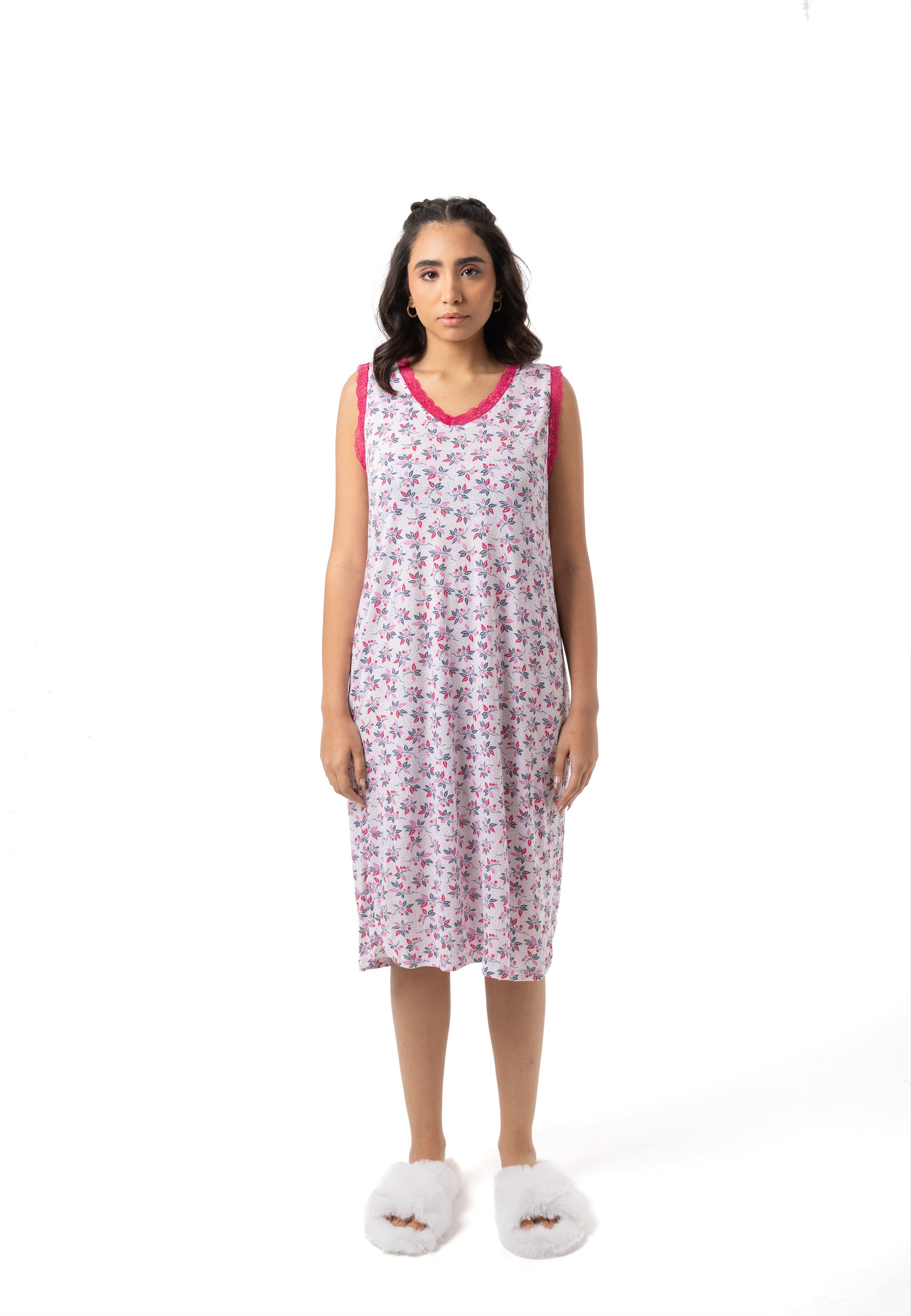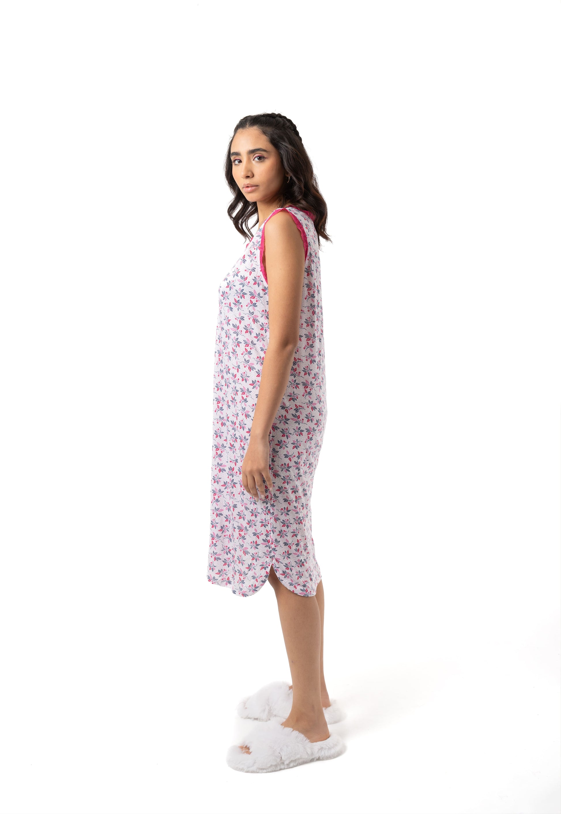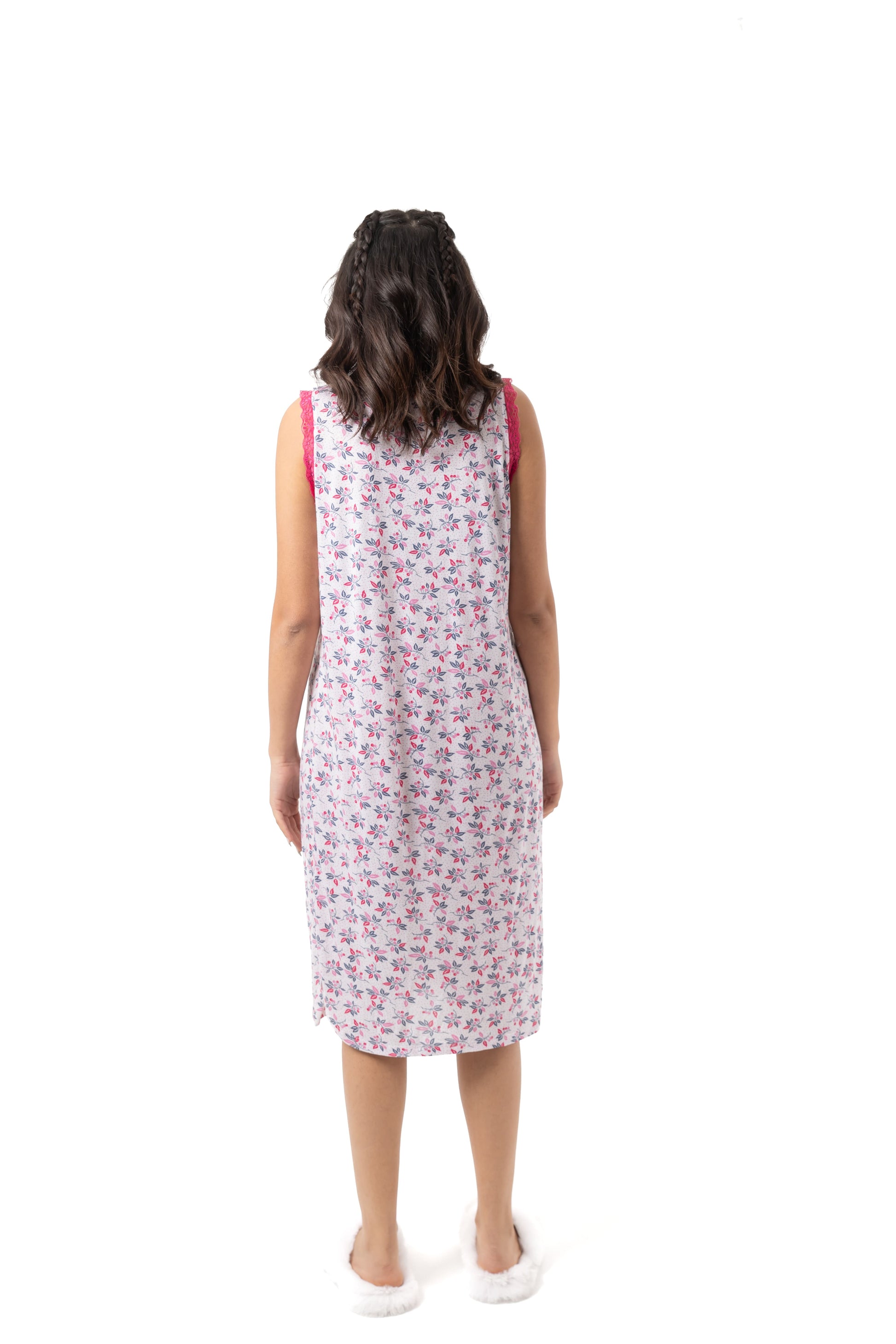 استمتعي بالراحة مع قميص النوم الكلاسيكي بنقشة الزهور، المصنوع من خليط 70% قطن و30% بوليستر لضمان نعومة وراحة تدوم طوال الليل. يتميز بأطراف من الدانتيل على الرقبة والأكمام لإضافة لمسة أنثوية أنيقة، مع تصميم واسع يوفر حرية الحركة أثناء النوم.