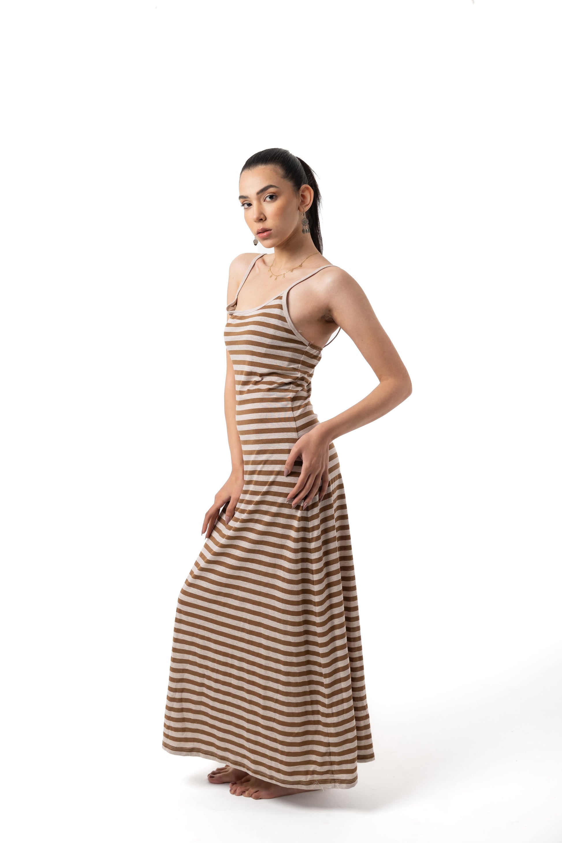 استمتعي بالراحة المطلقة مع فستان النوم المخطط المريح. مصمم للاسترخاء، يتميز هذا الفستان الطويل بنقشة مخططة كلاسيكية وإحساس ناعم وخفيف على البشرة. مصنوع من مزيج 50% قطن و50% بوليستر، ليكون الخيار الأمثل للاسترخاء أو النوم براحة تامة.