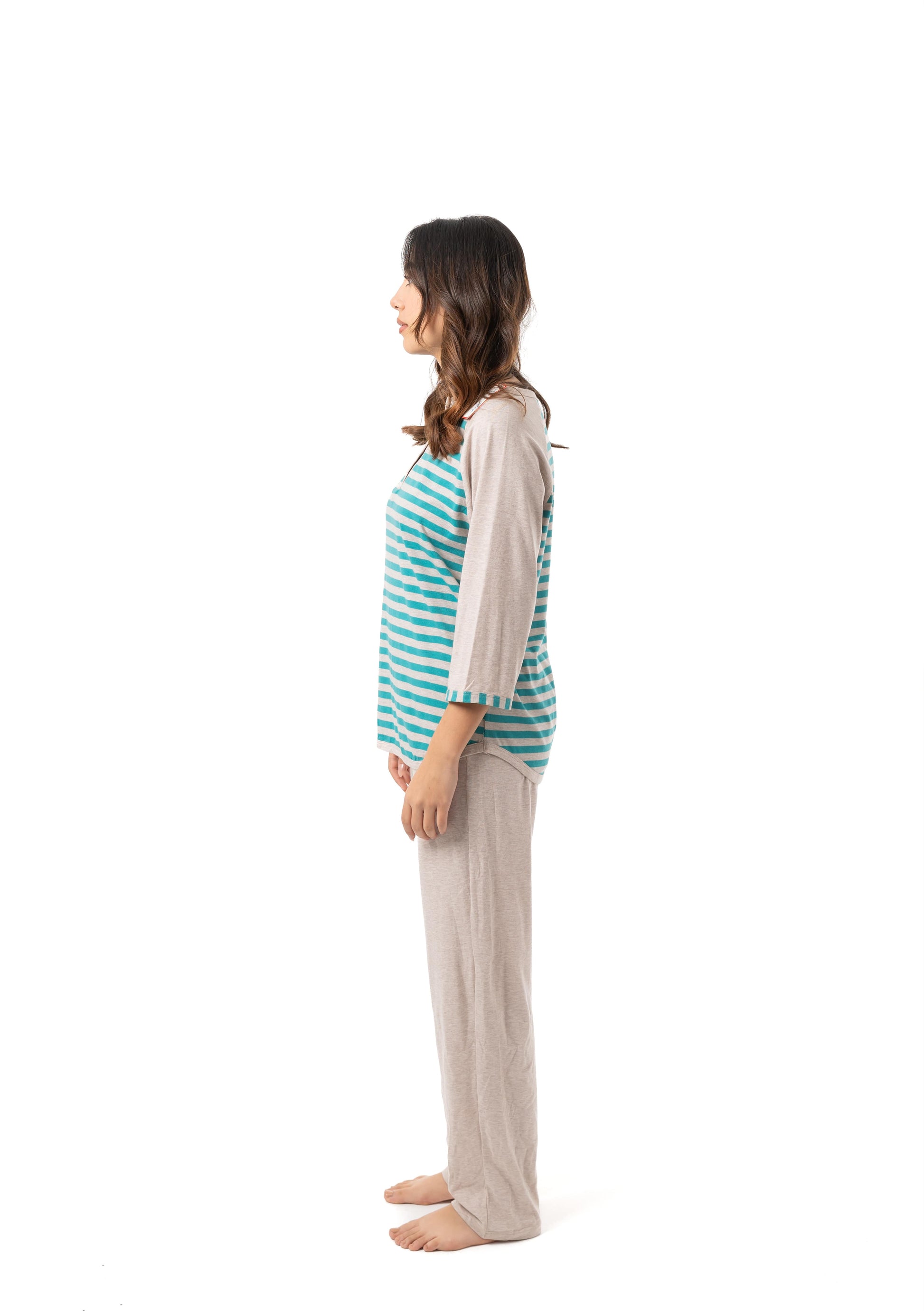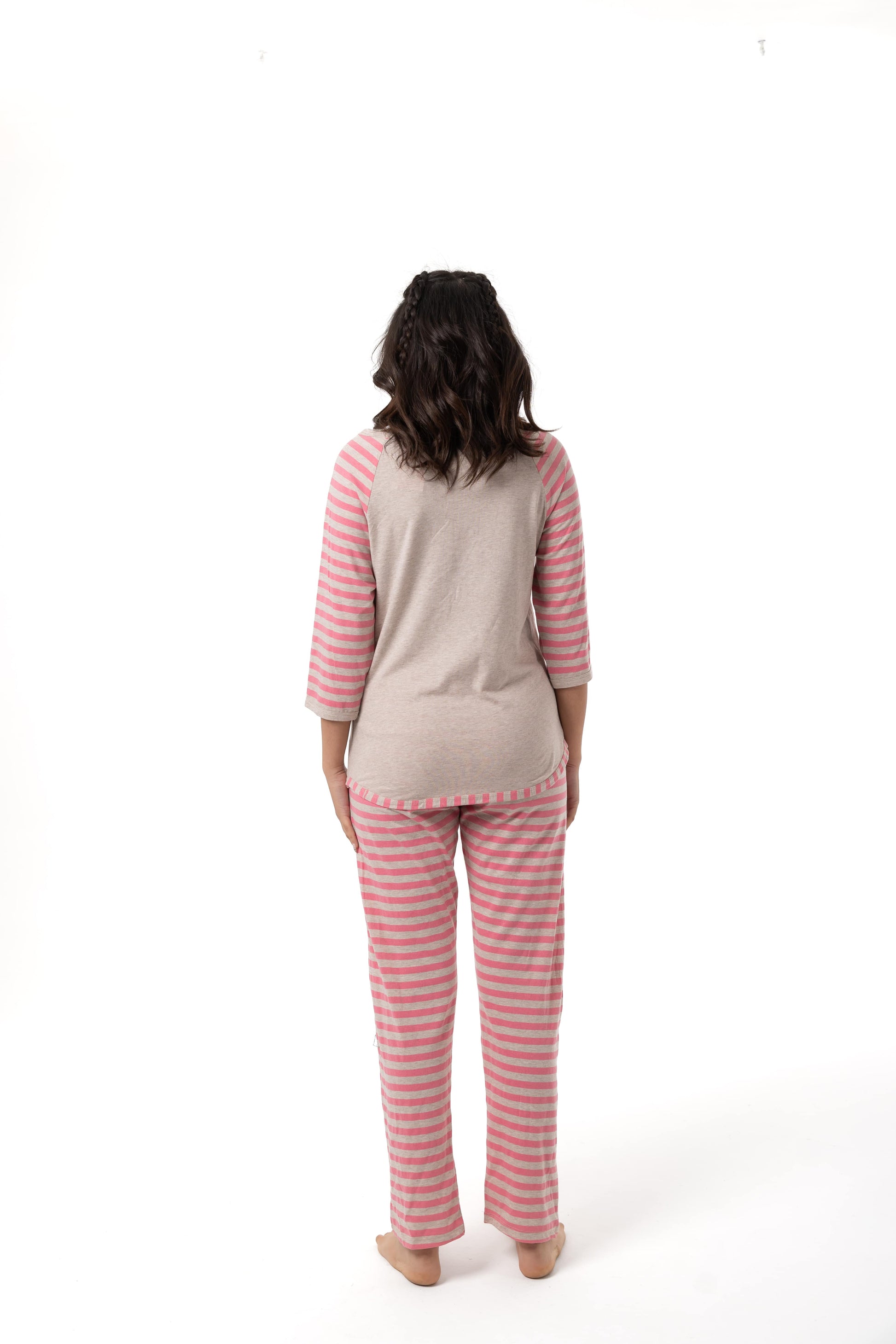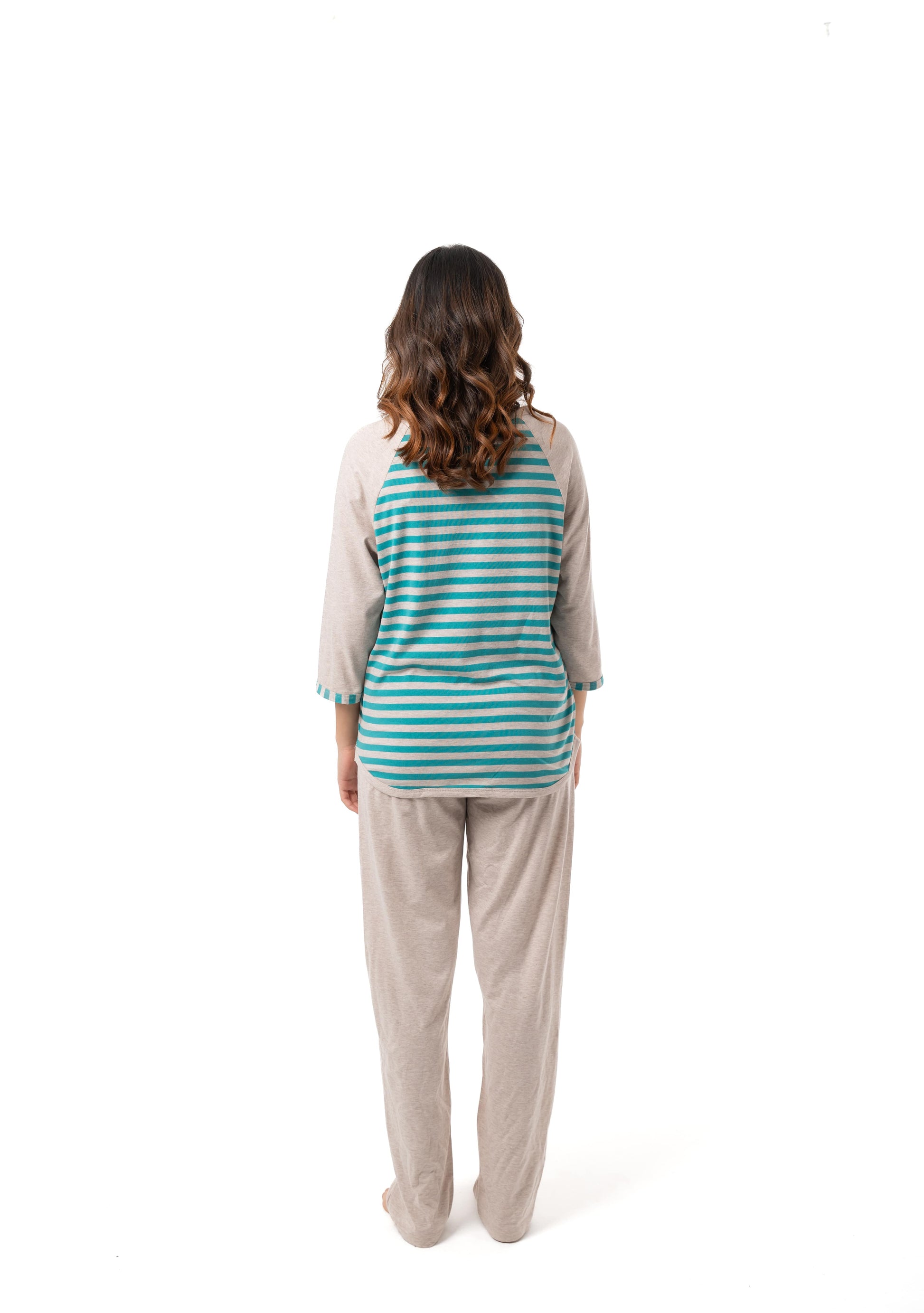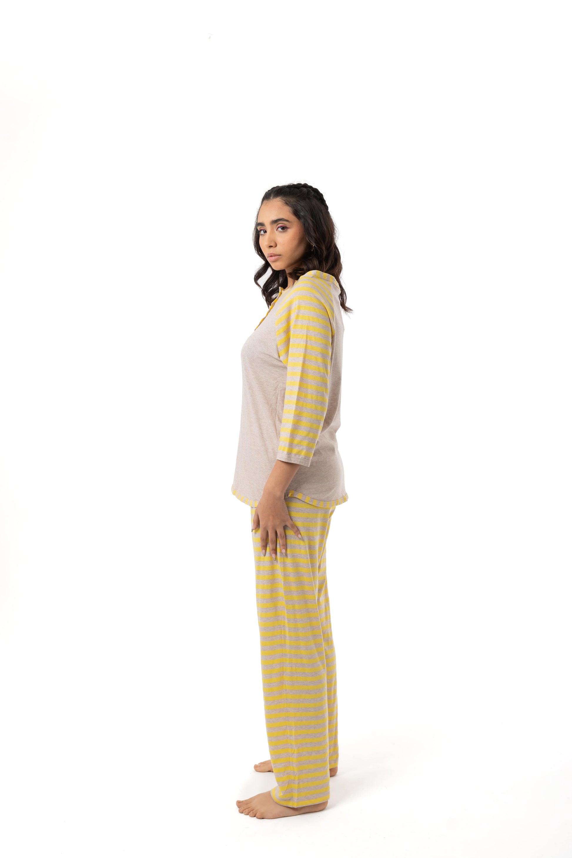 استمتعي بالراحة والأناقة مع طقم البيجامة دريمي كومفورت. تصميم مثالي للنوم المريح والاسترخاء طوال اليوم، بيتميز بتوب واسع بأكمام طويلة ومخطط أنيق مع بنطلون سادة مريح. خامة قطن-بوليستر ناعمة وخفيفة على البشرة، هتخليكِ تحسي براحة لا تقاوم!