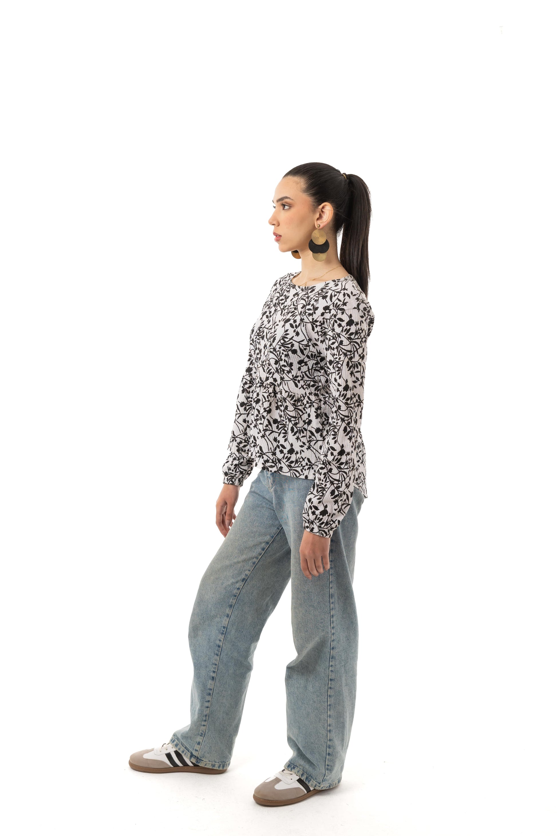 ضيفي لمسة أنيقة لدولابك مع البلوزة بنقشة الزهور. بتصميم بسيط وجذاب، تتميز البلوزة بنقشة مستوحاة من الزهور، مما يجعلها مثالية للإطلالات الكاجوال والرسمية. القماش الخفيف المصنوع من 100% بوليستر يضمن راحة طوال اليوم، بينما يمنحك التصميم الواسع حرية في الحركة. ارتديها مع جينز لإطلالة يومية مريحة أو نسقيها مع بنطلون رسمي لمظهر أكثر أناقة.