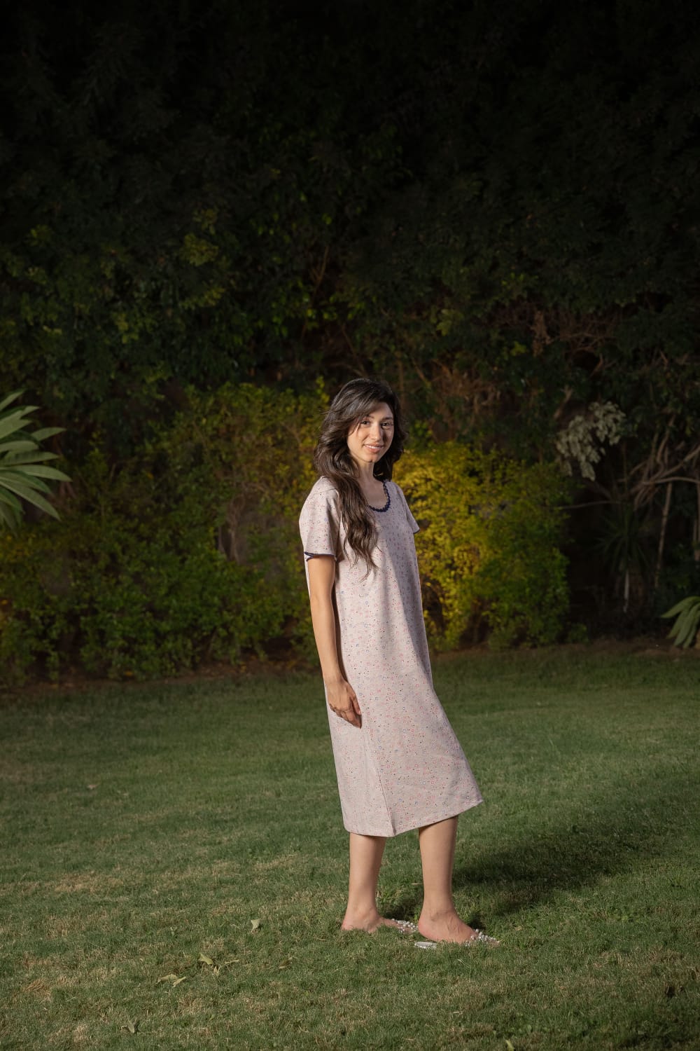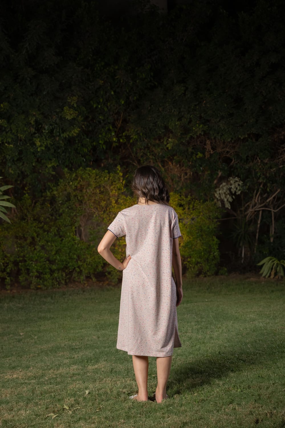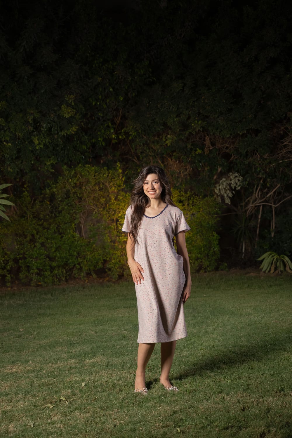 Soft half-sleeved cotton home shirt with delicate rose lace