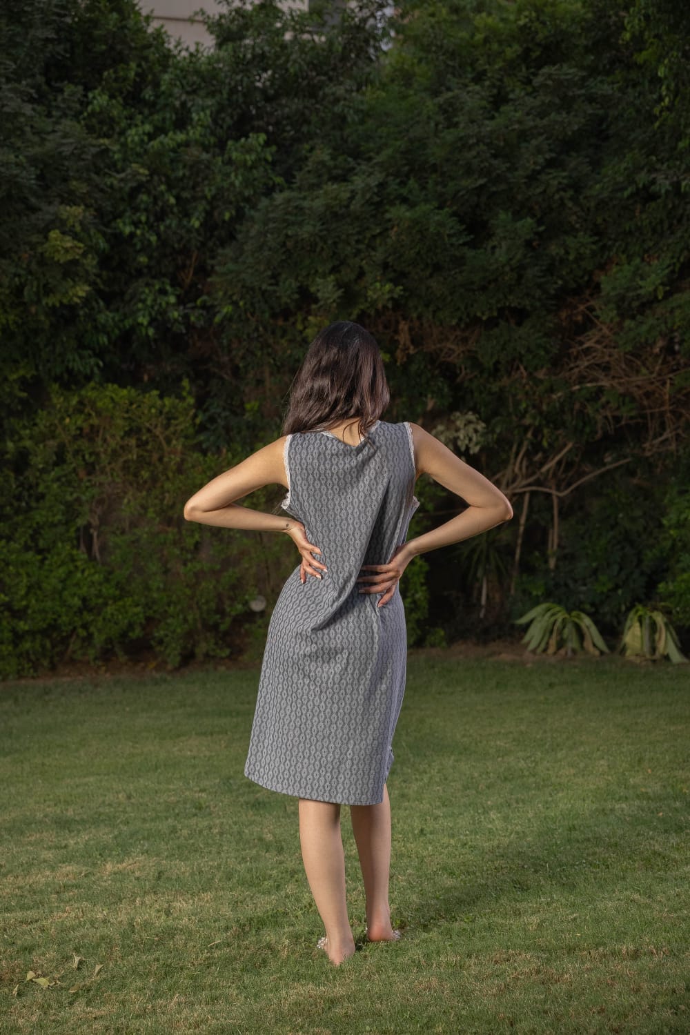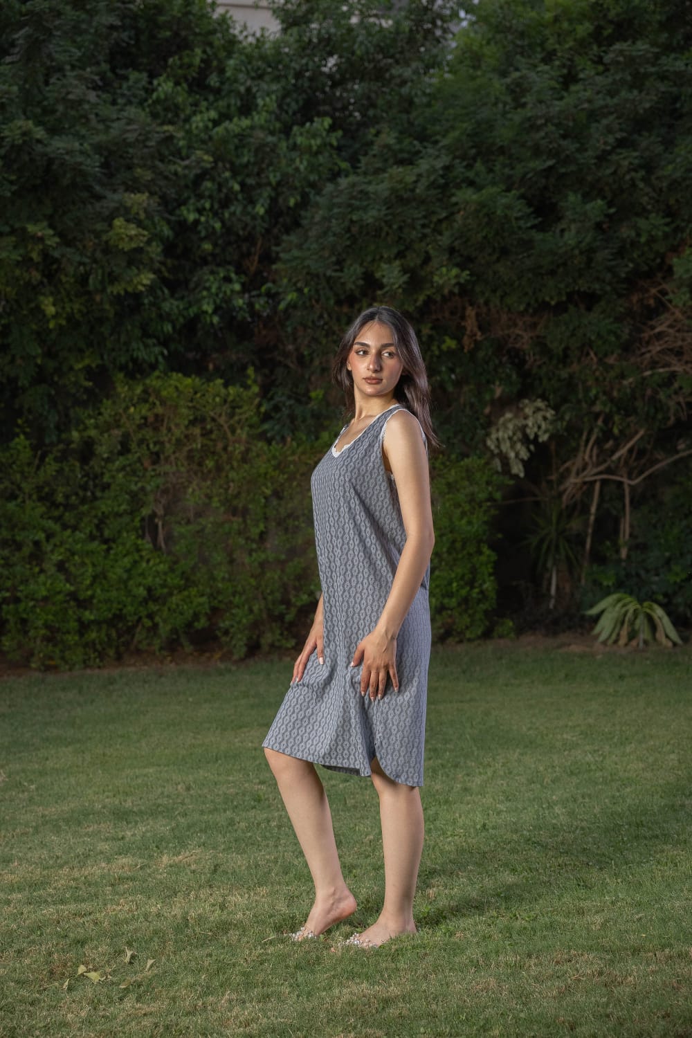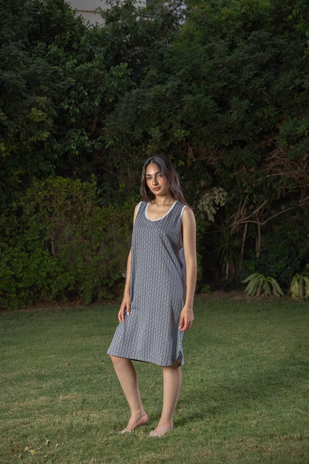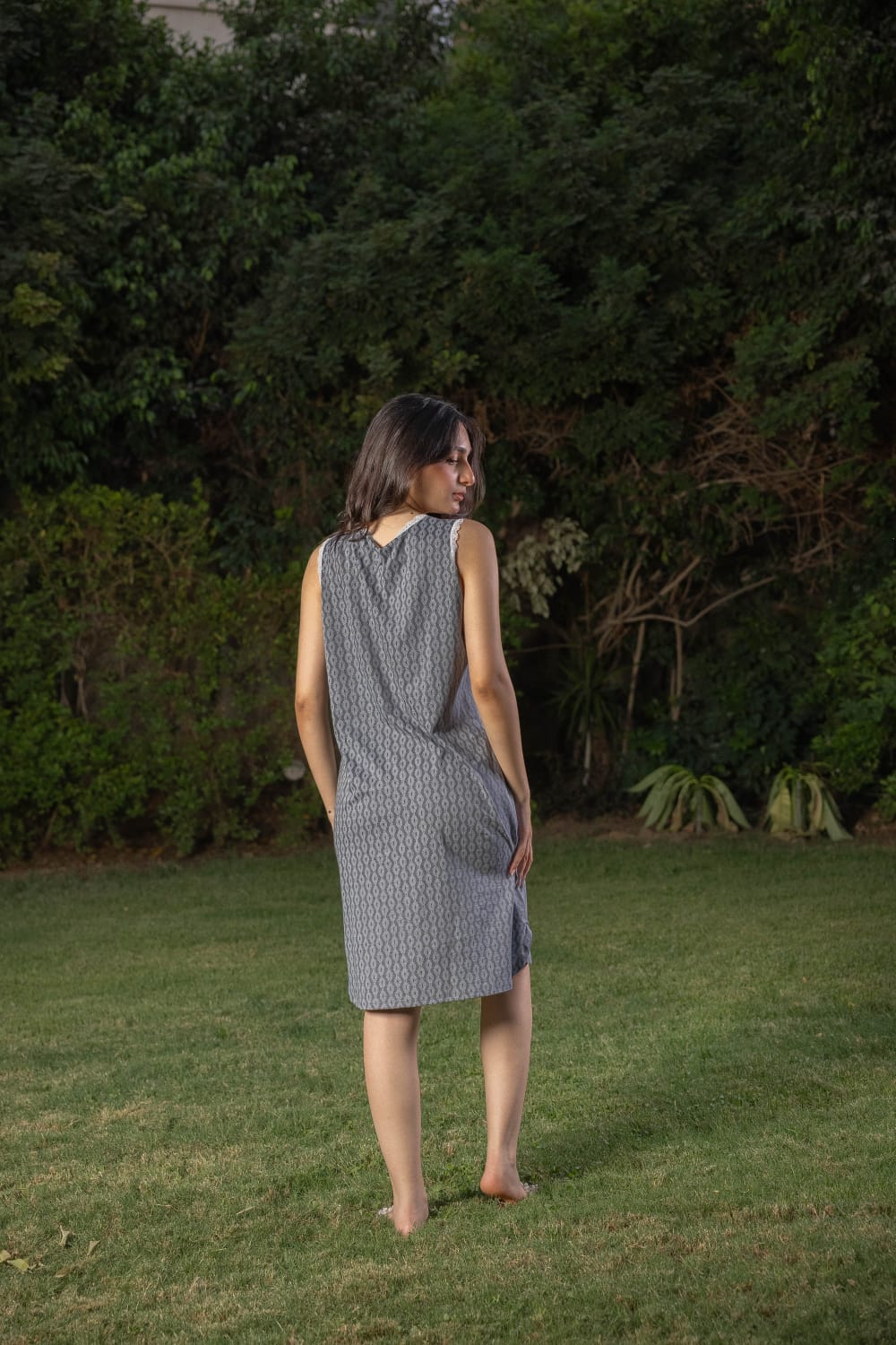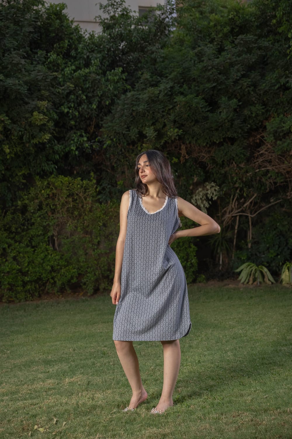 Soft, natural cotton, short home shirt with delicate white lace on the neck