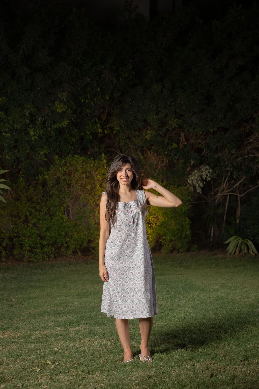 Soft home shirt made of pure cotton. The shirt is printed with roses and has rose buttons.
