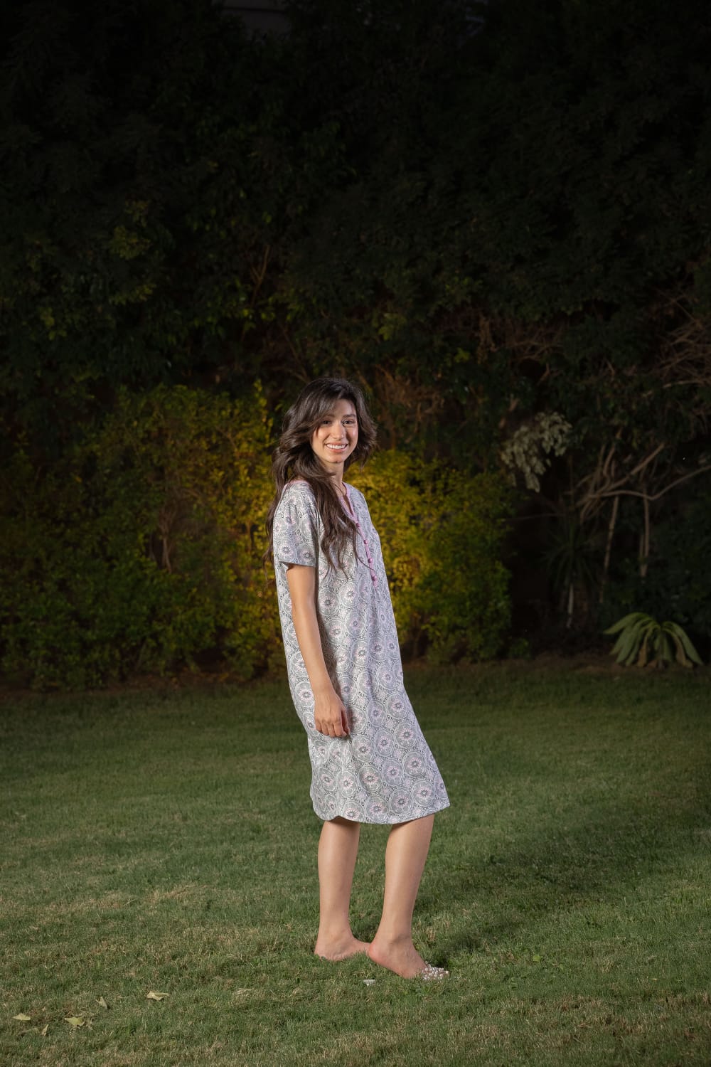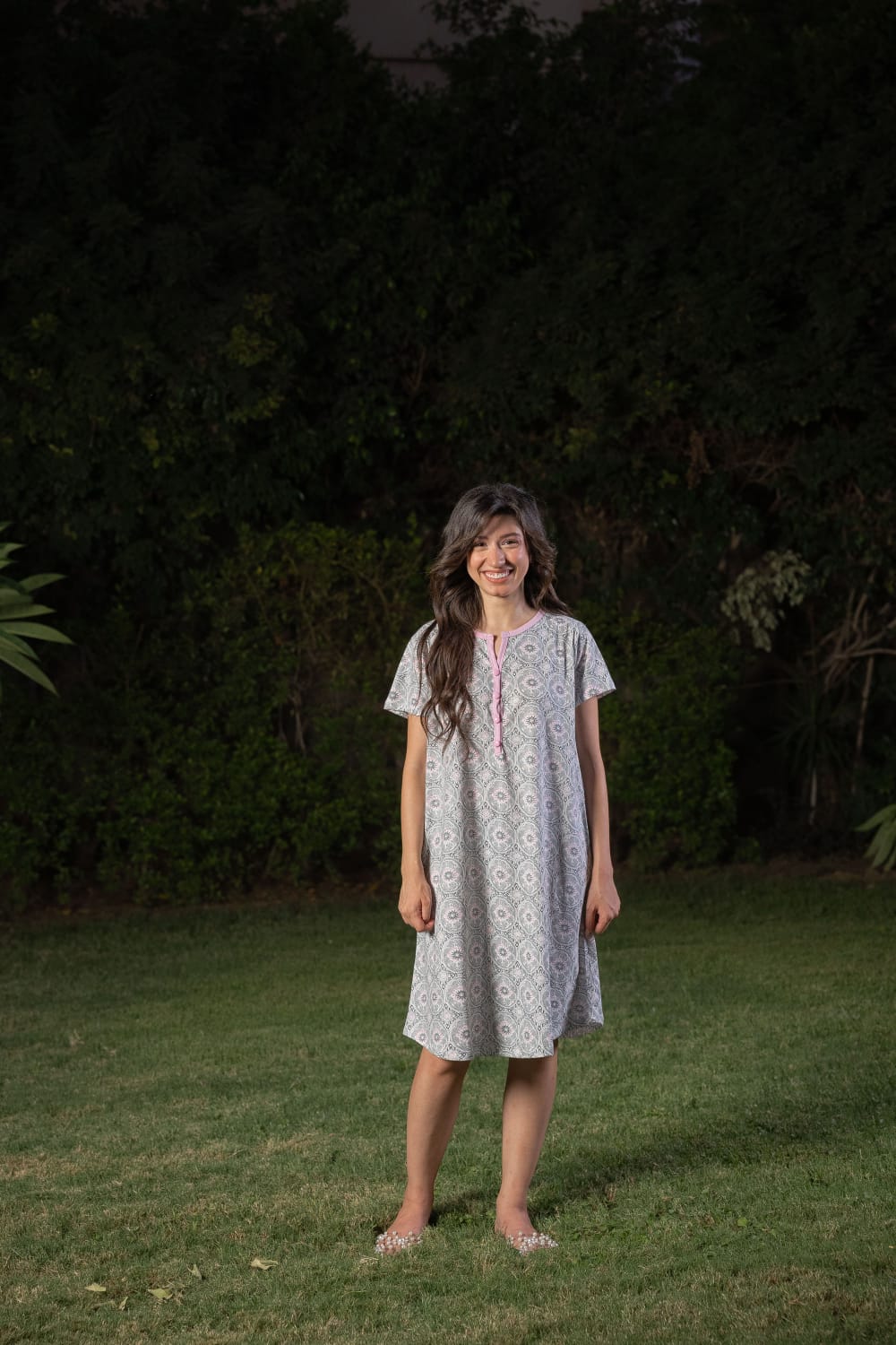 Soft rose half-sleeved home shirt. The shirt is made of pure cotton fabric. The shirt has delicate rose buttons.