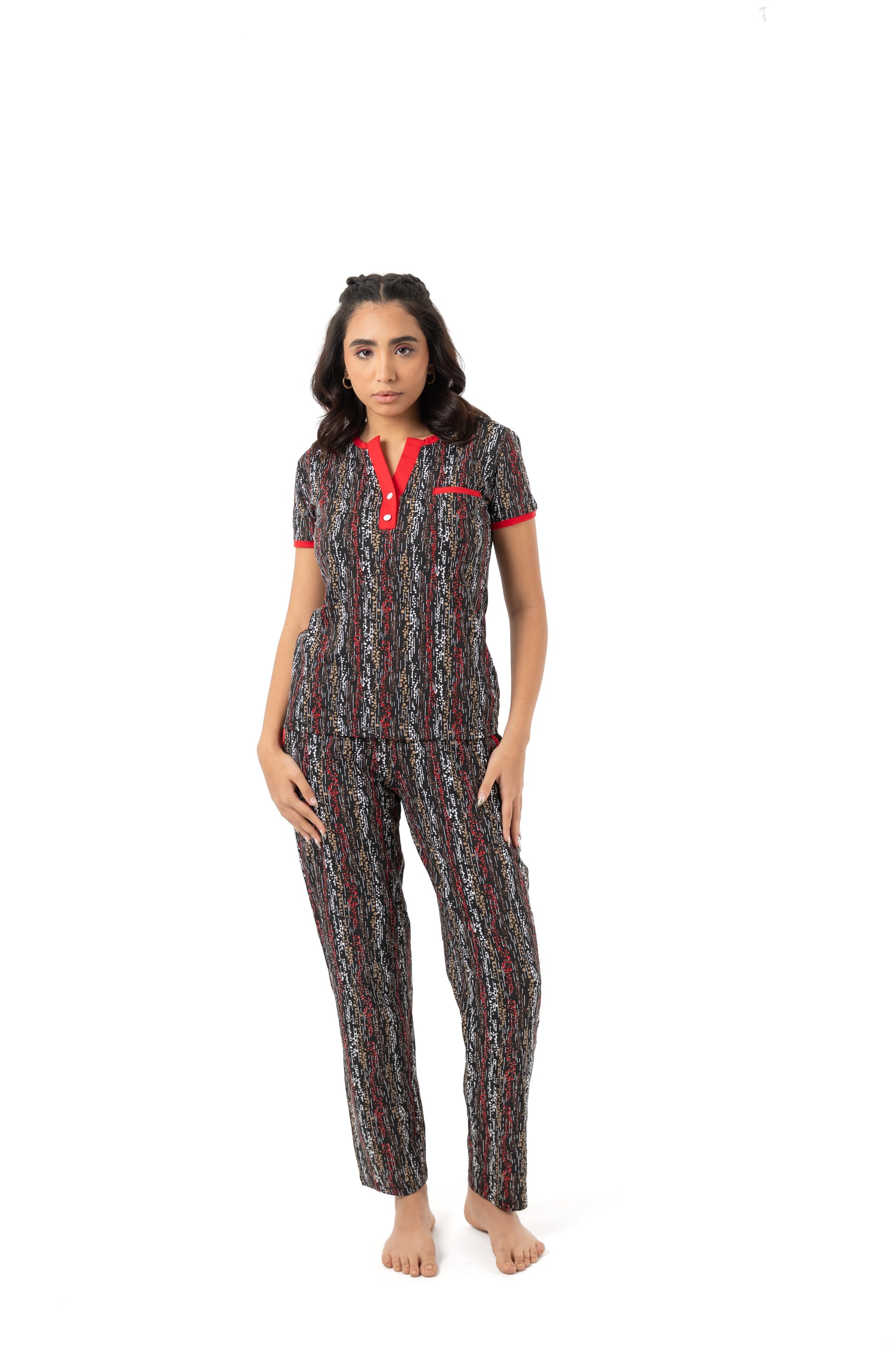 استمتعي بالراحة والأناقة مع طقم بيچاما ميدنايت كومفورت المصنوع من 100% قطن لضمان نعومة فائقة وإحساس منعش على البشرة. تصميم مثالي لقضاء ليلة هادئة ونوم مريح.