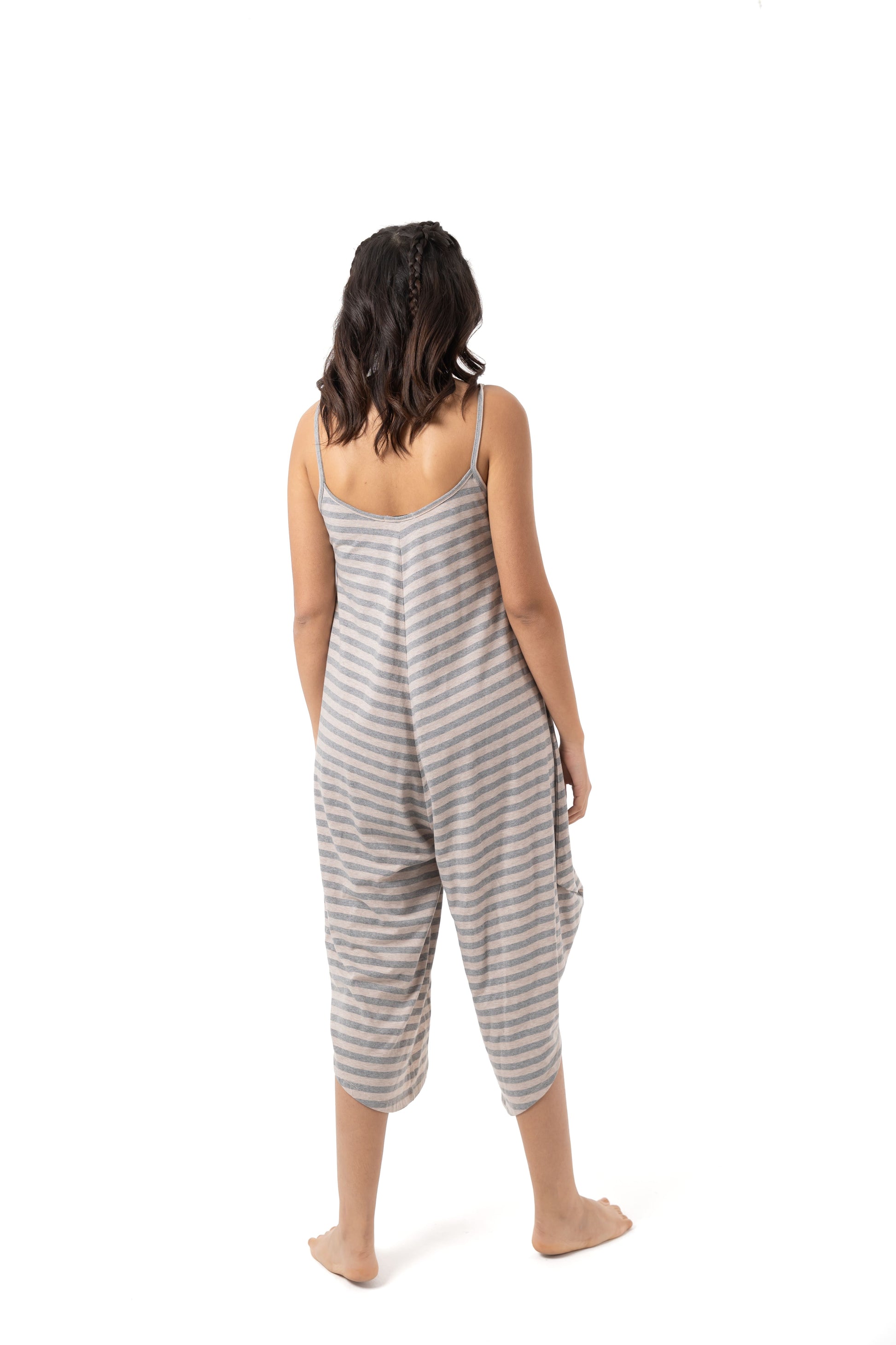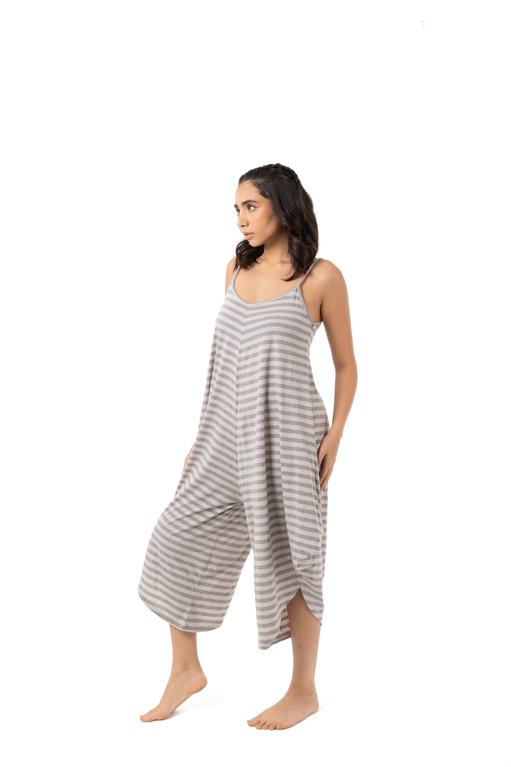 استمتعي بالراحة مع أوفرول البيچاما المخطط، مصمم خصيصًا للليالي الهادية والصباح البطيء. مصنوع من خليط 50% قطن و50% بوليستر، عشان يكون خفيف، ناعم، ومريح على بشرتك. تصميمه الواسع، بحمالات رفيعة ورجل واسعة، يضمنلك حرية حركة وراحة تامة أثناء النوم أو الاسترخاء.