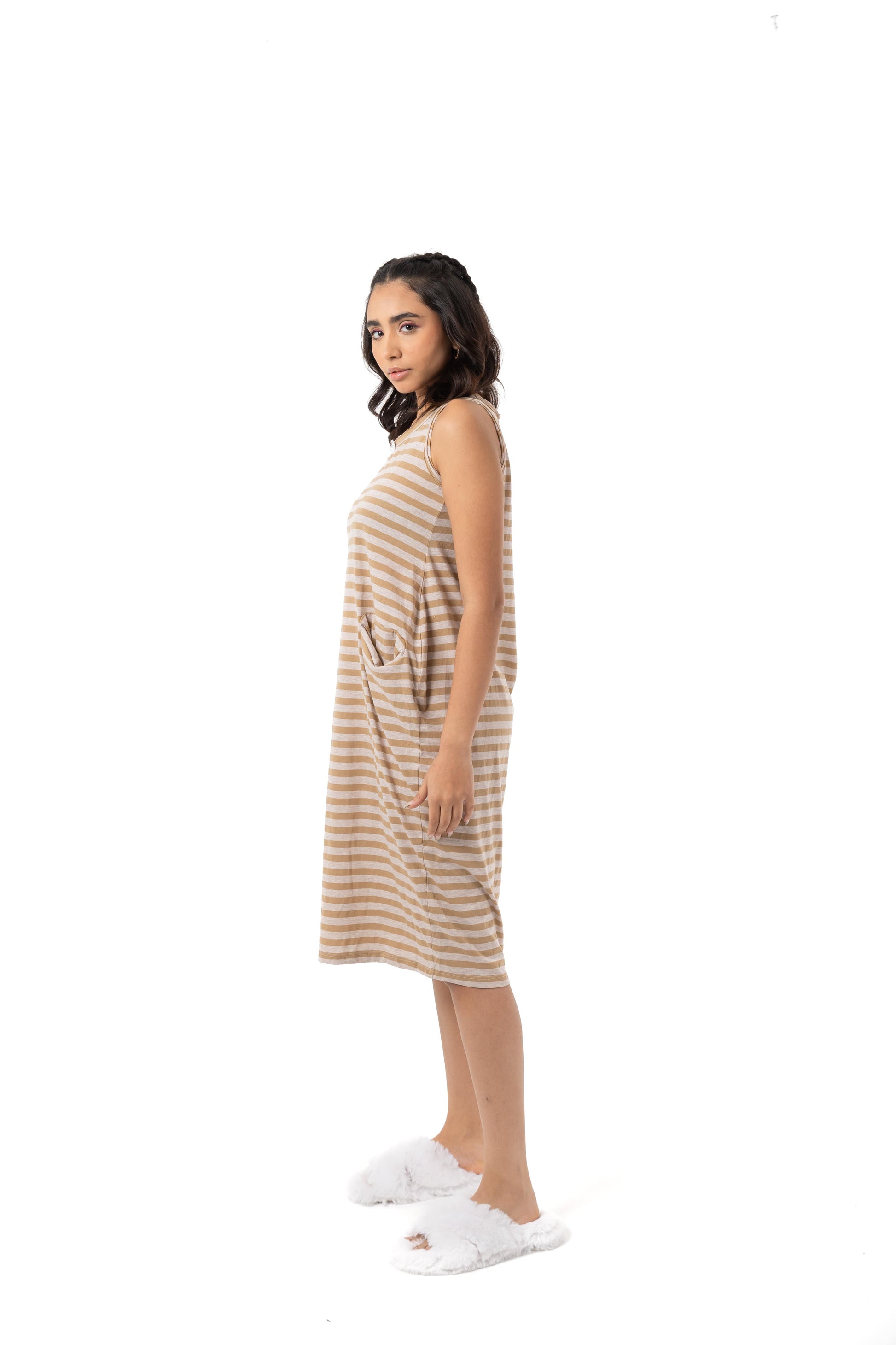 فستان بيجاما مقلم بدون أكمام