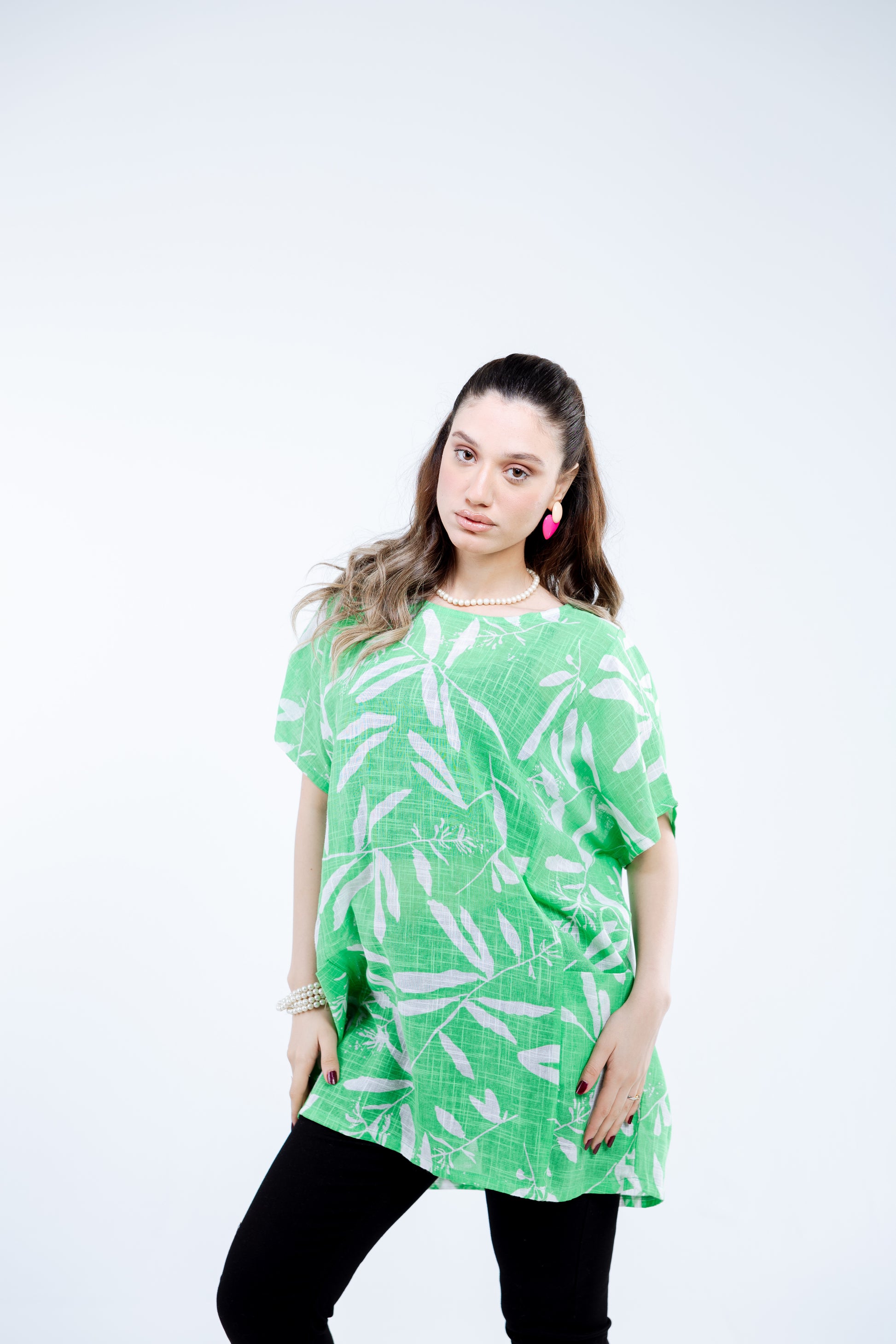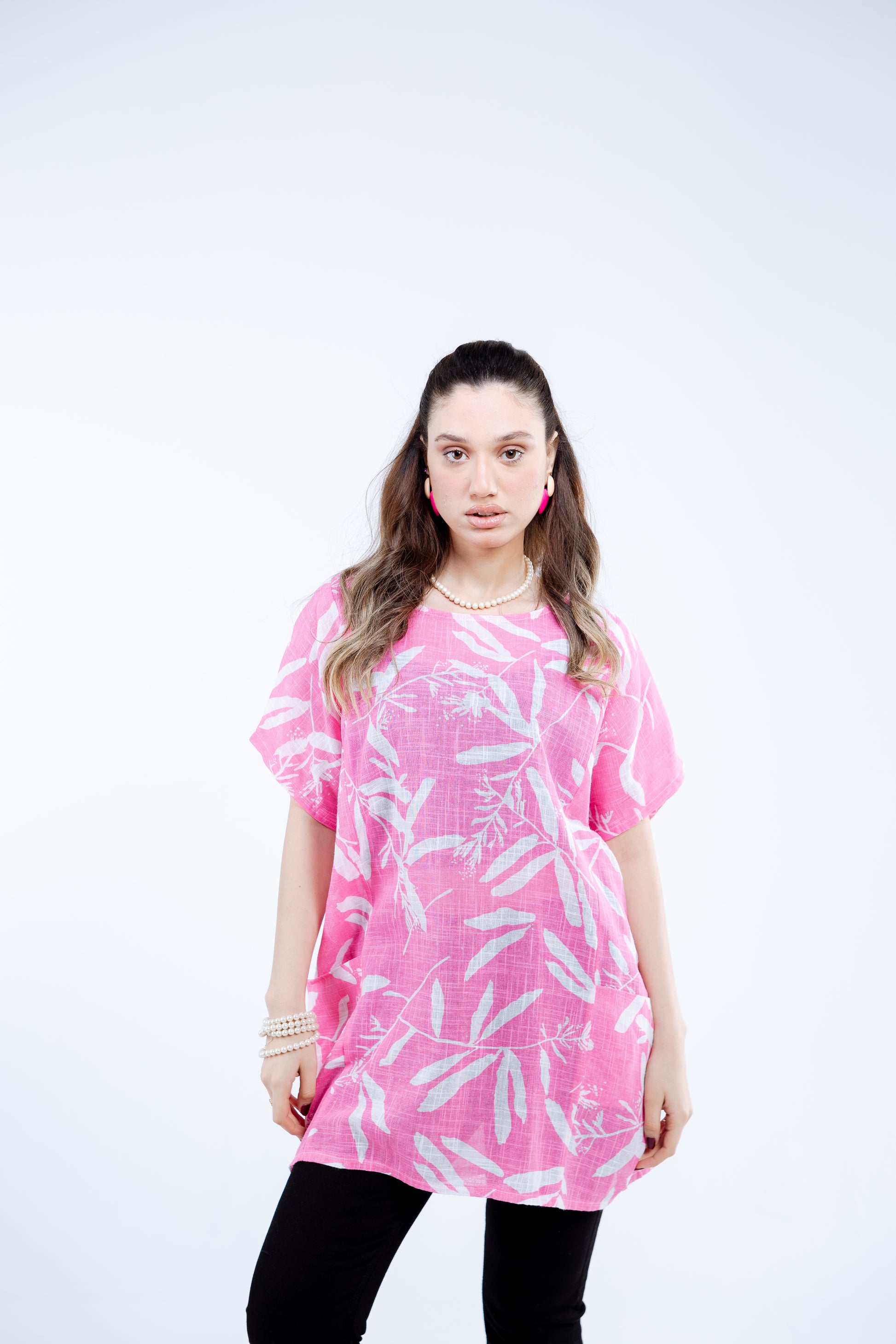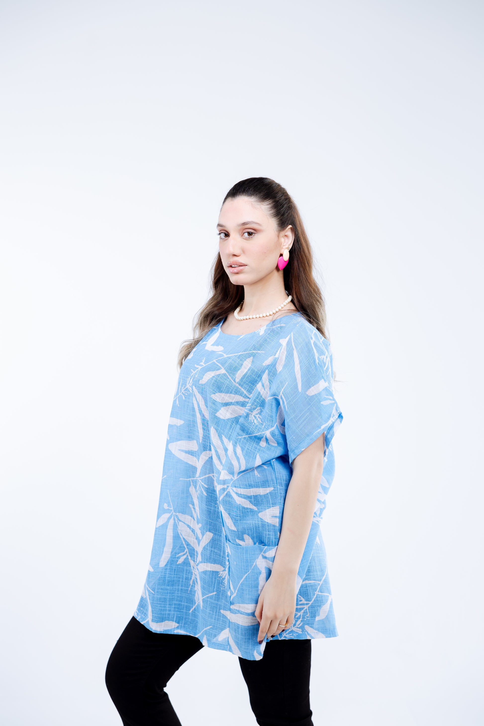 A long, half-sleeved, cotton linen blouse, perfect for summer.