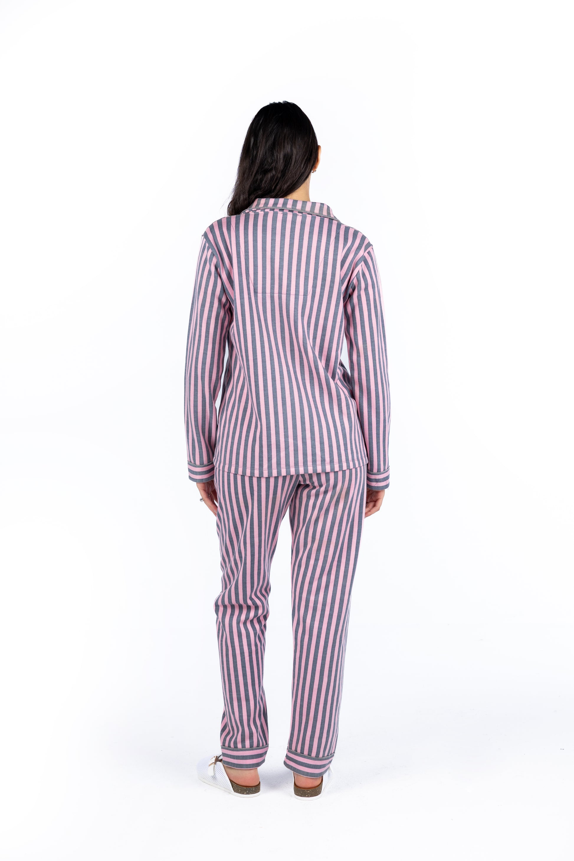 Winter pajama set: pants and jacket with striped buttons, made of soft cotton