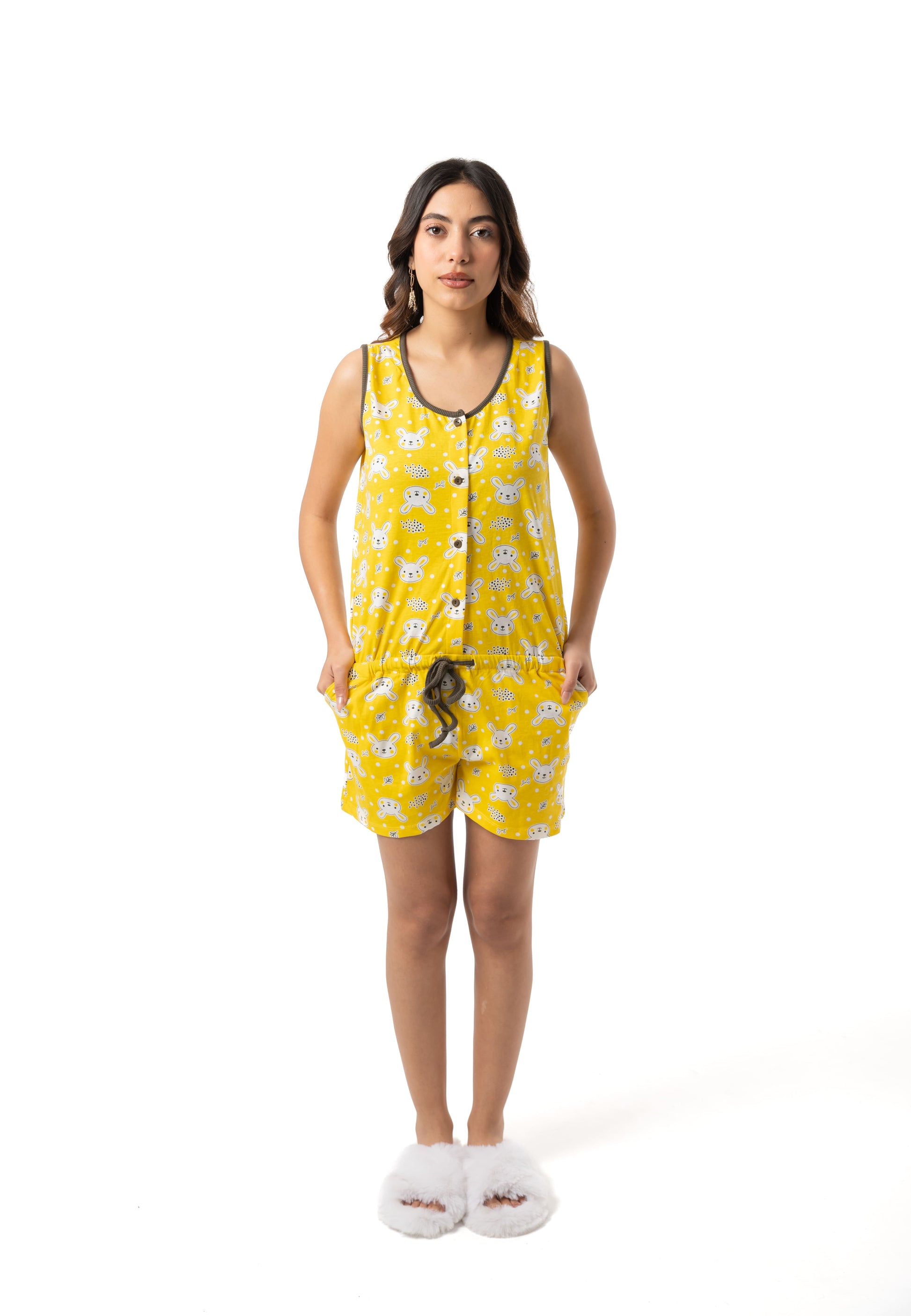 Drift into comfort with our Yellow Pattern Pajama Set. Crafted from 100% soft cotton, this lightweight sleeveless top and shorts set is perfect for warm nights and lazy mornings. Designed for breathability and ease, it features a relaxed fit and a charming subtle rabbit print on a soft yellow base. Whether you're lounging or sleeping, this set keeps you cozy in style.